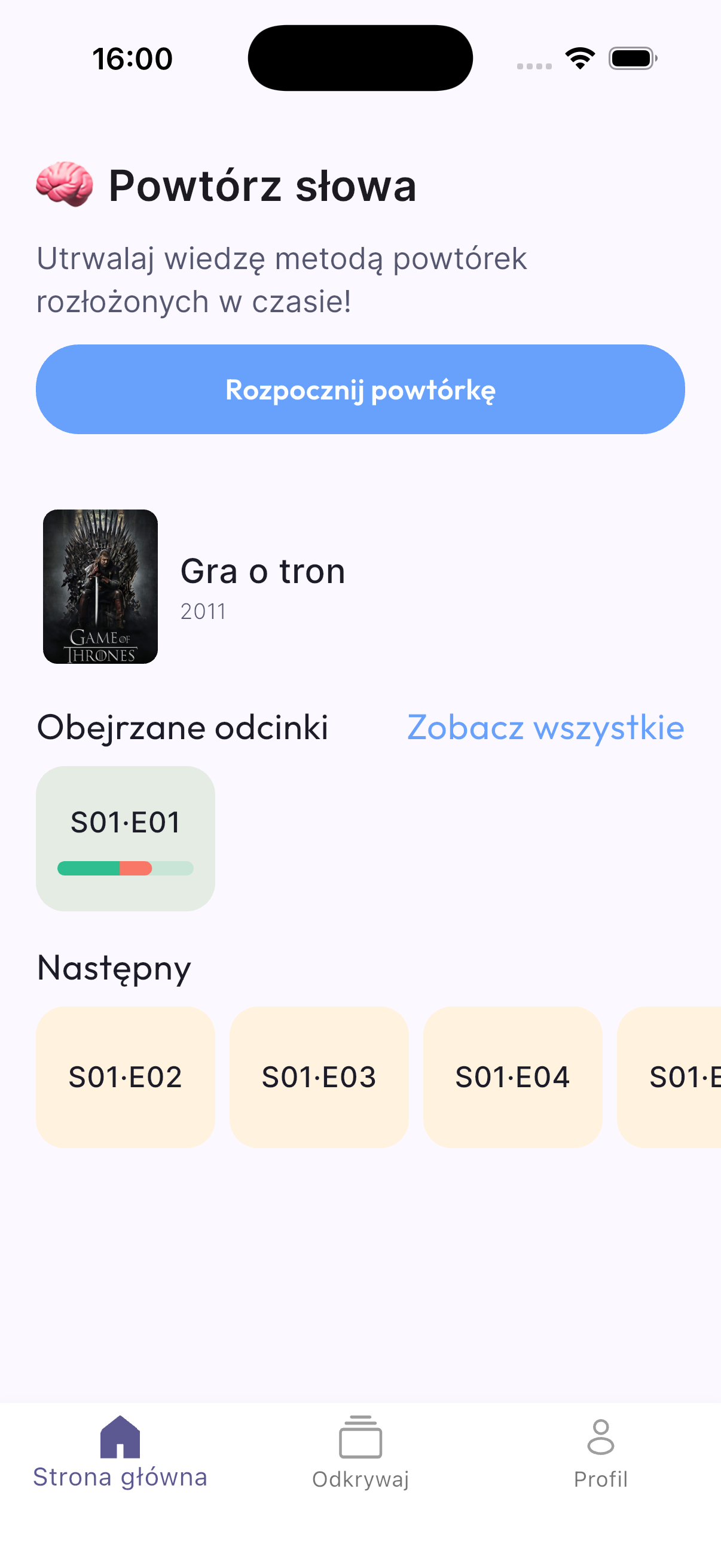 This MVP was built as a mobile app for learning English using TV series and contextual vocabulary. The goal was to quickly launch a product focused on learning mechanics, without building a full-scale education platform.MVP Scope